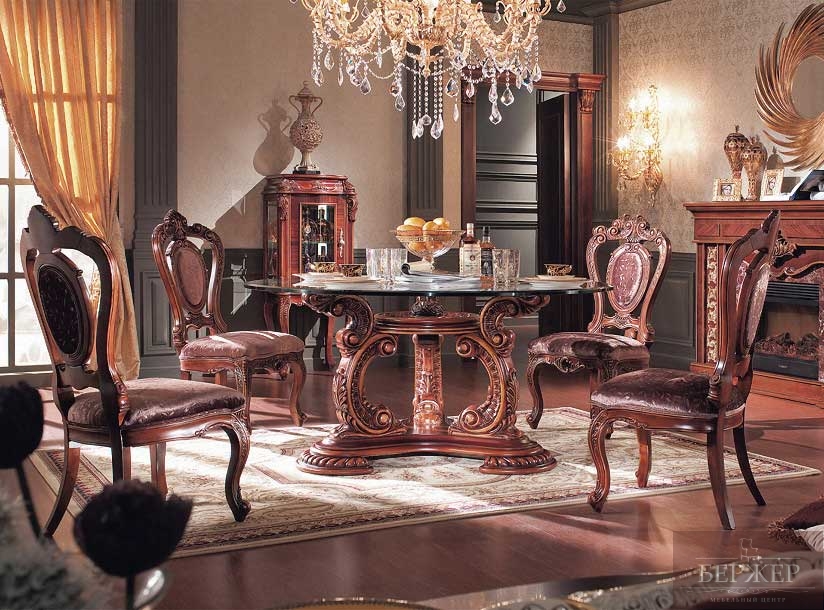 БЕРЖЕР, мебельный центр (Мебельный PORT) / Каталог / Столы / Обеденный стол круглый с резьбой «Александрия»