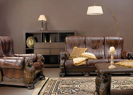 Мебель из натуральной кожи, прекрасно подходящая для солидного пространства: домашней библиотеки, рабочего кабинета, помещения с очагом. Данная мебель украшена роскошной резьбой, исполненной ручным способом. Отличающийся своими формами, стилем и соразмерностью пропорций комплект создан для истинных ценителей комфорта, роскоши и престижа.